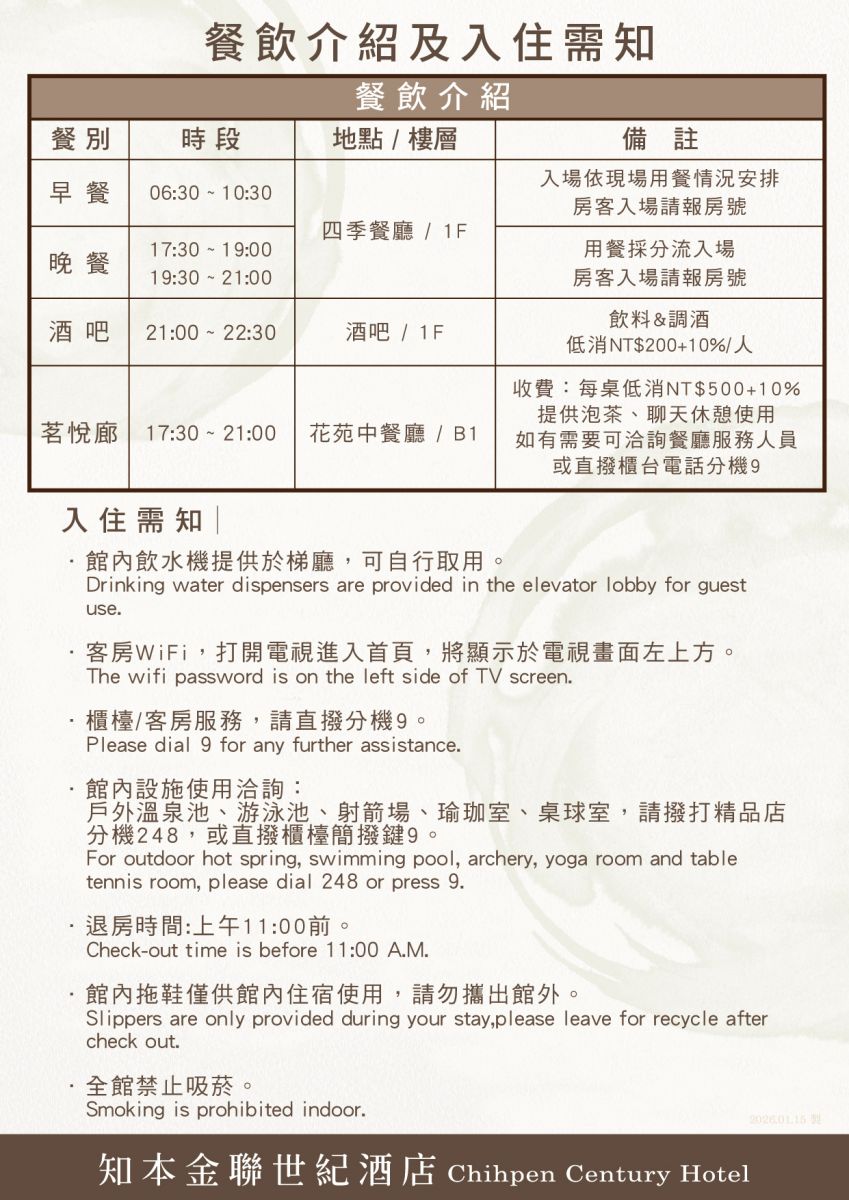 入住需知 - Chihpen Century Hotel