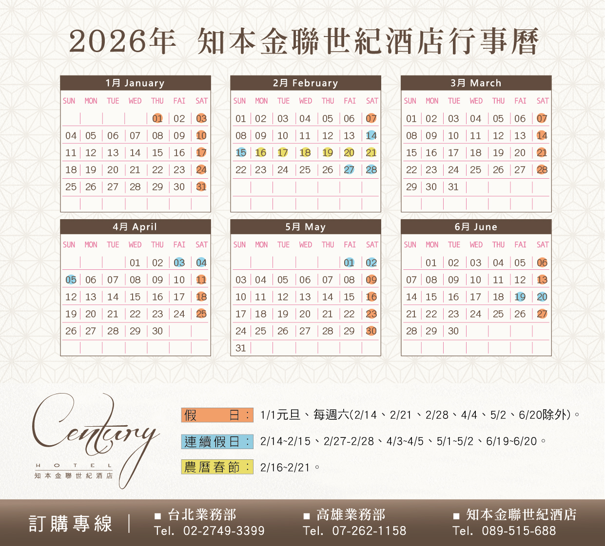 〈2026年度行事曆〉 - センチュリーホテル知本