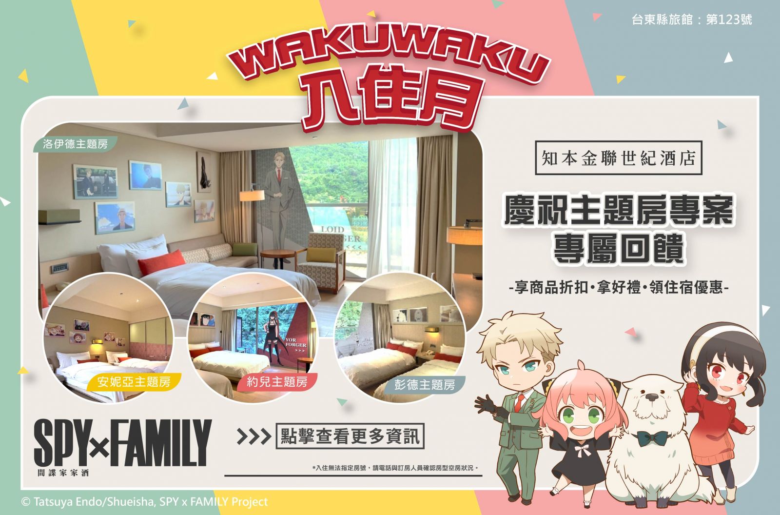 - 《SPY×FAMILY 間諜家家酒》系列商品專屬折扣碼 (折扣碼將於入住後寄送至住客登記之 Email/手機簡訊)
