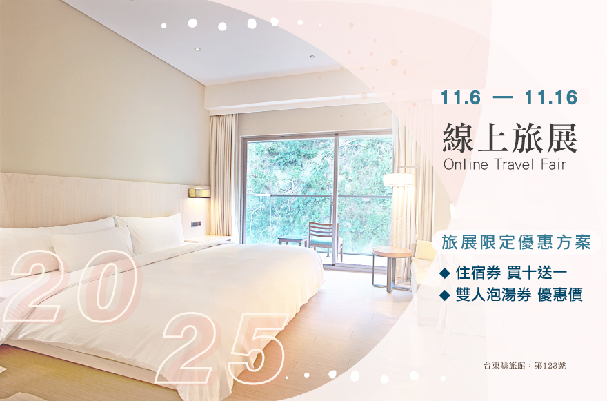 一泊一食 ‧ 知本微旅行住宿券 NT$3,600/張 (買十送一)
