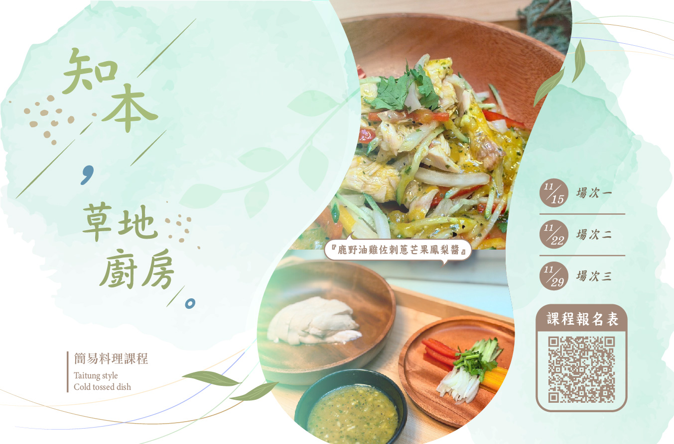 由飯店人員帶領,學習製作融合當地特色的美味簡易料理『鹿野油雞佐刺蔥芒果鳳梨醬』